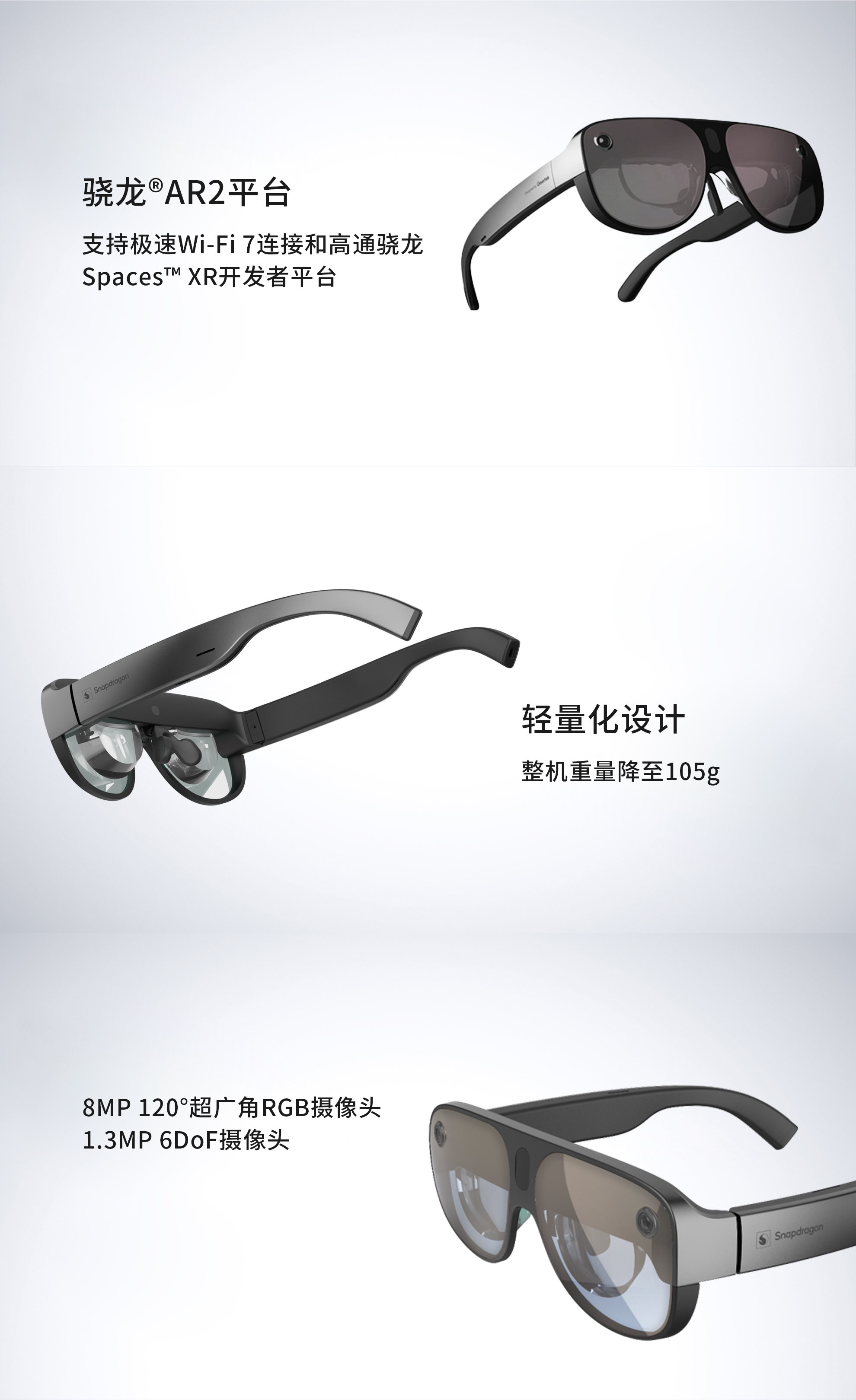 基于驍龍?AR2平臺的輕量級AR智能眼鏡參考設(shè)計,是人生就是搏與高通自2015年合作以來開發(fā)的第三代AR眼鏡參考設(shè)計,支持驍龍Spaces? XR開發(fā)者平臺,致力于滿足企業(yè)和消費者不同產(chǎn)品需求,幫助終端品牌廠商快速開發(fā)量產(chǎn)性能卓越的輕量級AR智能眼鏡產(chǎn)品。