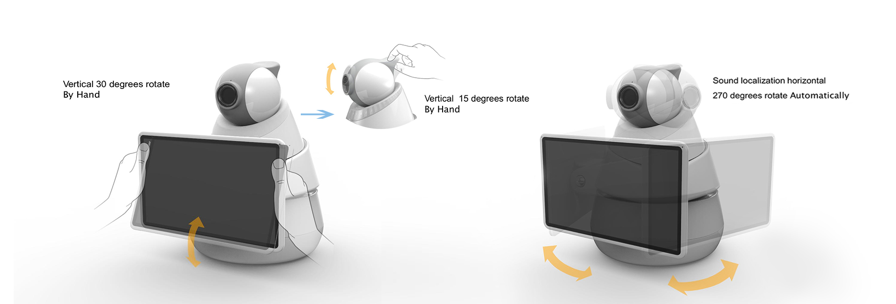 As a home control hub, this robot serves as the interface of all home appliances. With it, users are able to monitor and control their home devices by an APP on their mobile phone.